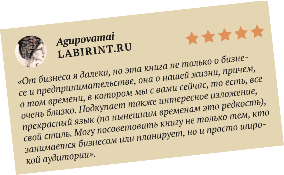 Мария, получившая бизнес-образование на английском и хорошо знакомая с западными подходами к ведению бизнеса, и в книге, и в жизни – всегда за Россию и высоко ценит то, что живет и делает бизнес в нашей стране. Читатели тоже оценили, помимо прочего, еще и патриотизм автора. Так что книгу, первый тираж которой уже полностью распродан, вероятно, ждет еще немало допечаток и переизданий.