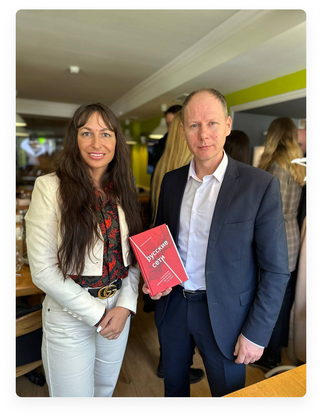 Мария Михайлова подарила свою книгу «Русские сети» Мурылеву Аркадию Анатольевичу, Уполномоченному по защите прав предпринимателей Псковской области.