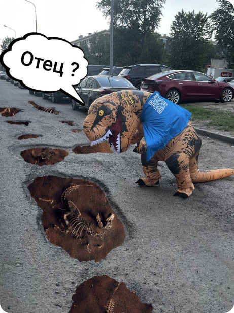 Тема качества дорог в Санкт-Петербурге не теряет актуальности! Необычную акцию провел наш Фонд! ???? Динозавр прошелся по улицам нового ЖК «Царская Столица». Привлечь внимание к проблеме получилось, через два дня ямы были отремонтированы!!!